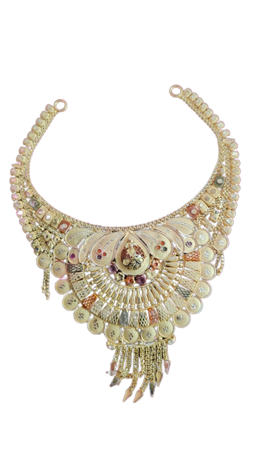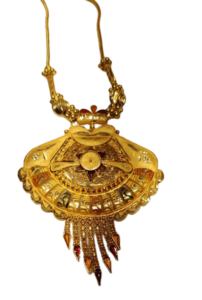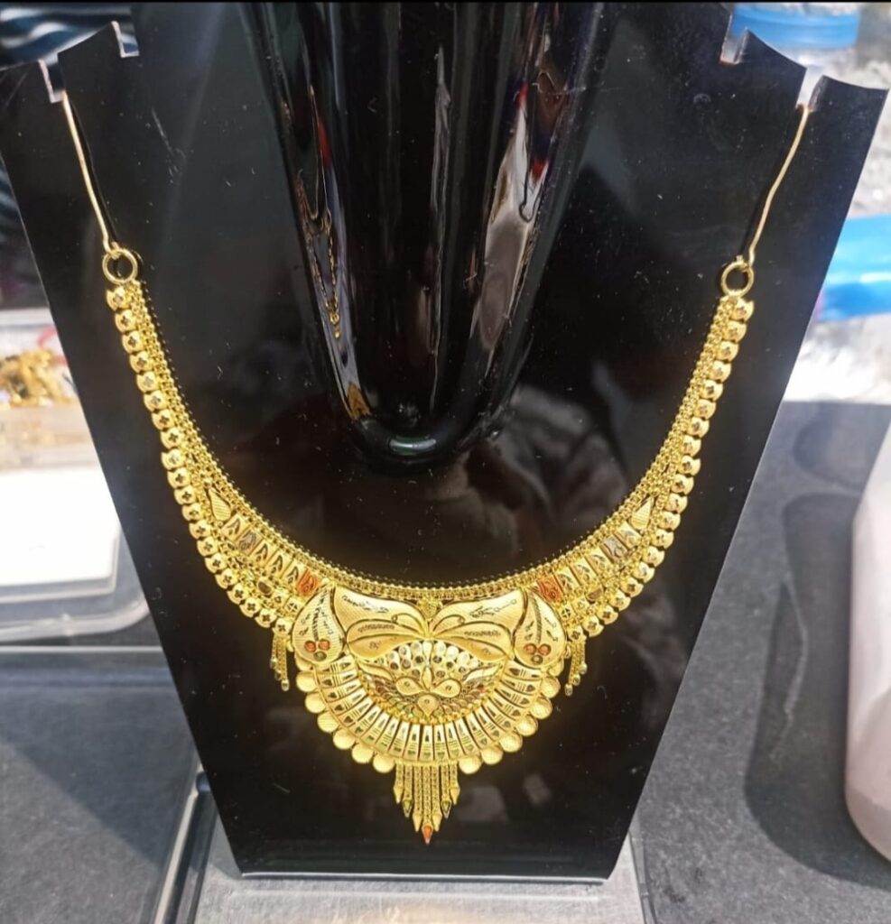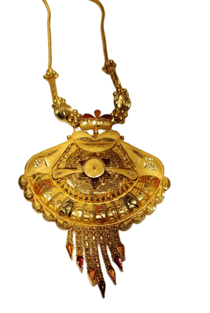यह सोने का हार अद्वितीय और आकर्षक डिज़ाइन के साथ आता है। इसमें इस्तेमाल किए गए सोने की गुणवत्ता और उसकी चमक इस हार को एक खास वस्तु बनाते हैं। यह हार किसी भी पारंपरिक या आधुनिक अवसर के लिए एक आदर्श चयन है।